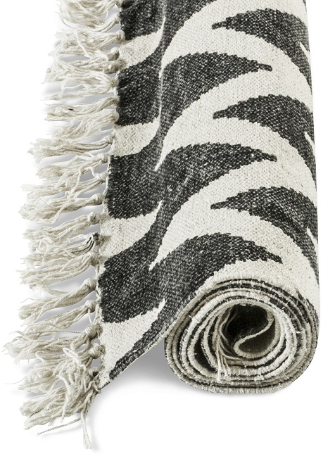 Äkta stentvättad bomullsmatta av hög kvalitet i svart och vitt.