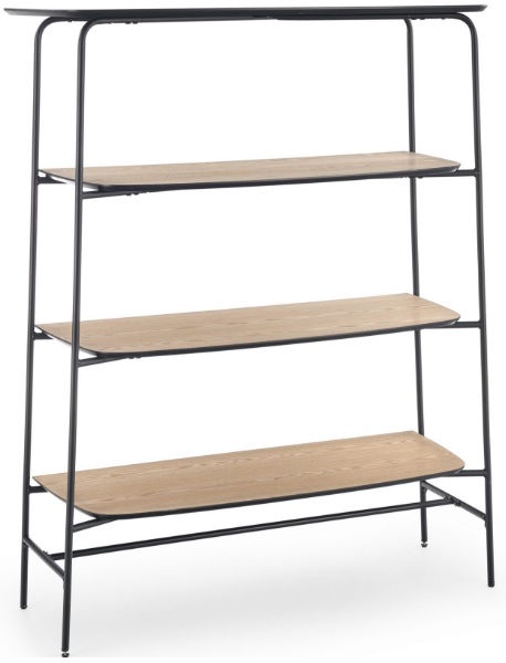 En snygg bokhylla med en stilren design. Bokhyllan har 4 hyllplan av lackerad MFP (premium träskiva) och MFP (premium träskiva) med fanér. Själva ramen är tillverkad av pulverlackerad metall.