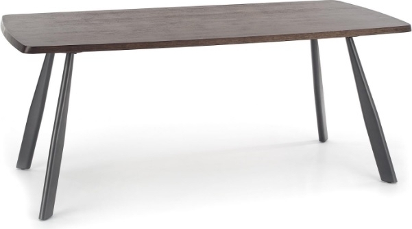 Ett mysigt matbord med en modern design. Bordsskivan är tillverkad av MFP (premium träskiva) med ett mycket vackert betsat valnötsfanér, och underredet är av pulverlackerad metall.