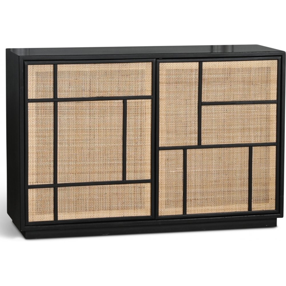Stockholm sideboard i svartlackat trä med fronter i rotting. Sideboardet har två hyllor. Detta sideboard har bra förvaringsmöjligheter och en trendig design.