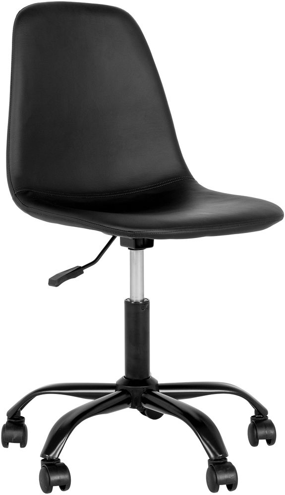 Skrivbordsstol i svart PU med svarta ben.
