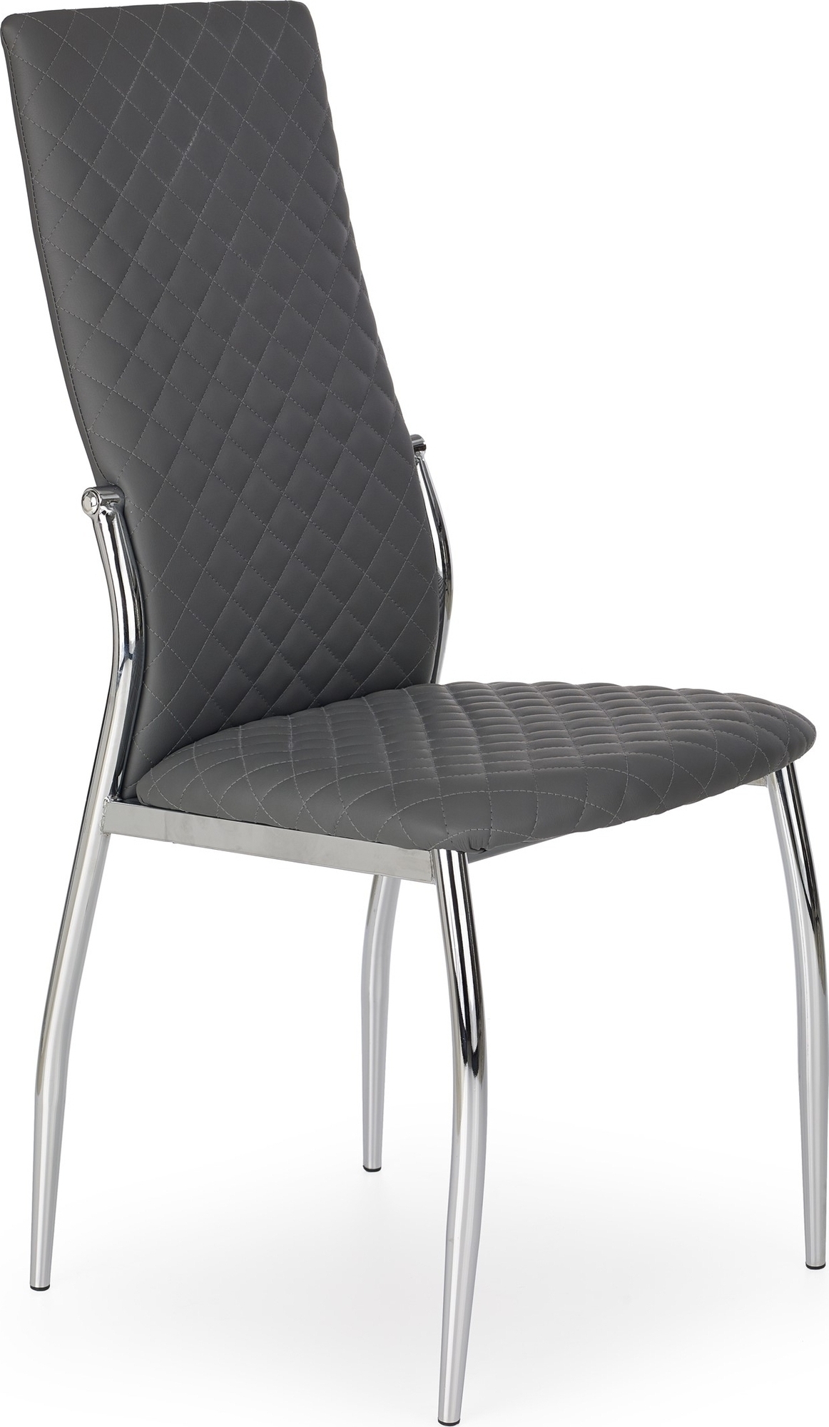 En elegant matstol med en modern design. Underredet är tillverkat i kromad metall och sitsen är klädd med ett mycket behagligt grått konstläder för maximal komfort.