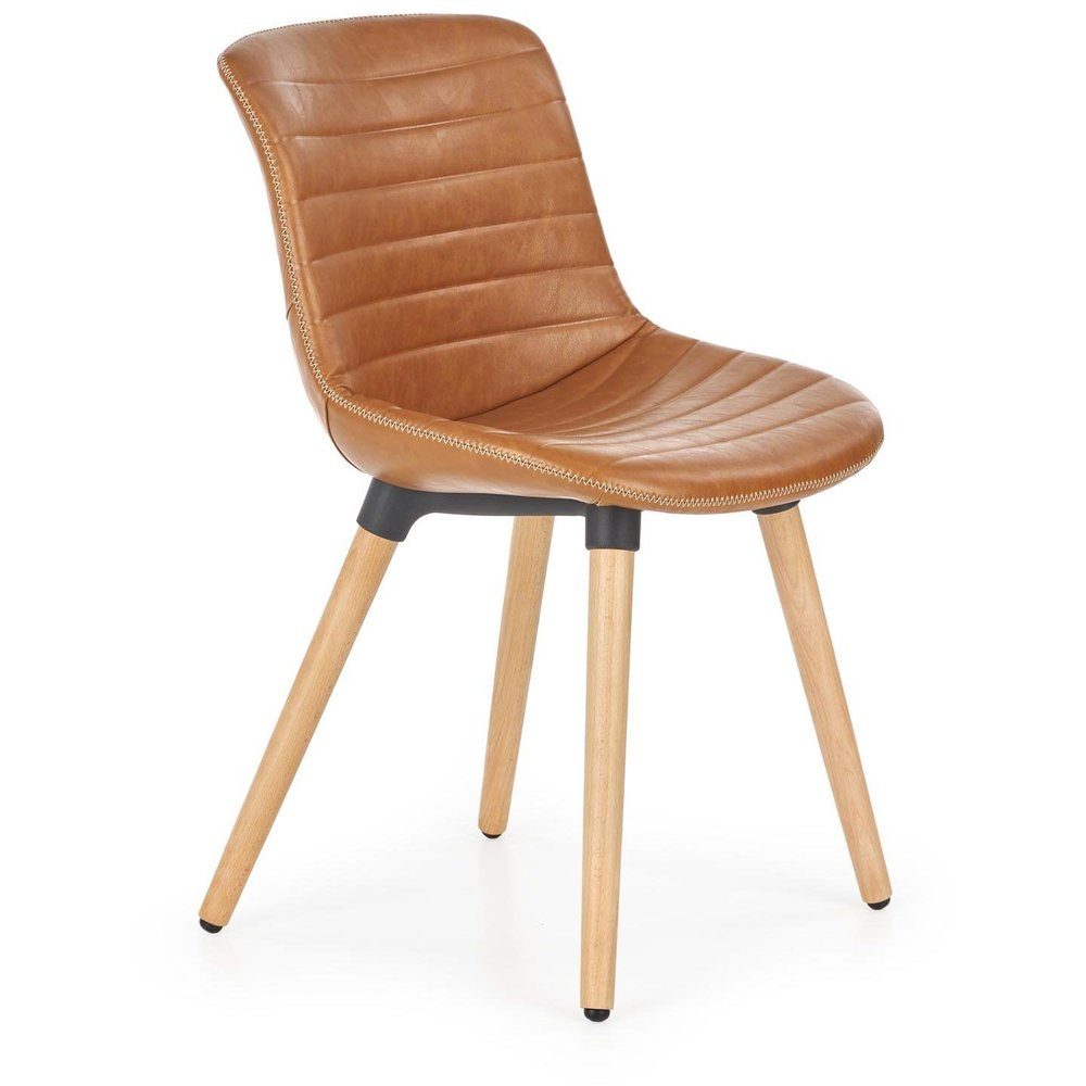 En snygg matstol med en stilren design. Matstolen är tillverkad av solid trä med den naturliga trä looken på benen och sitsen är klädd med ett mycket behagligt konstläder för maximal komfort.