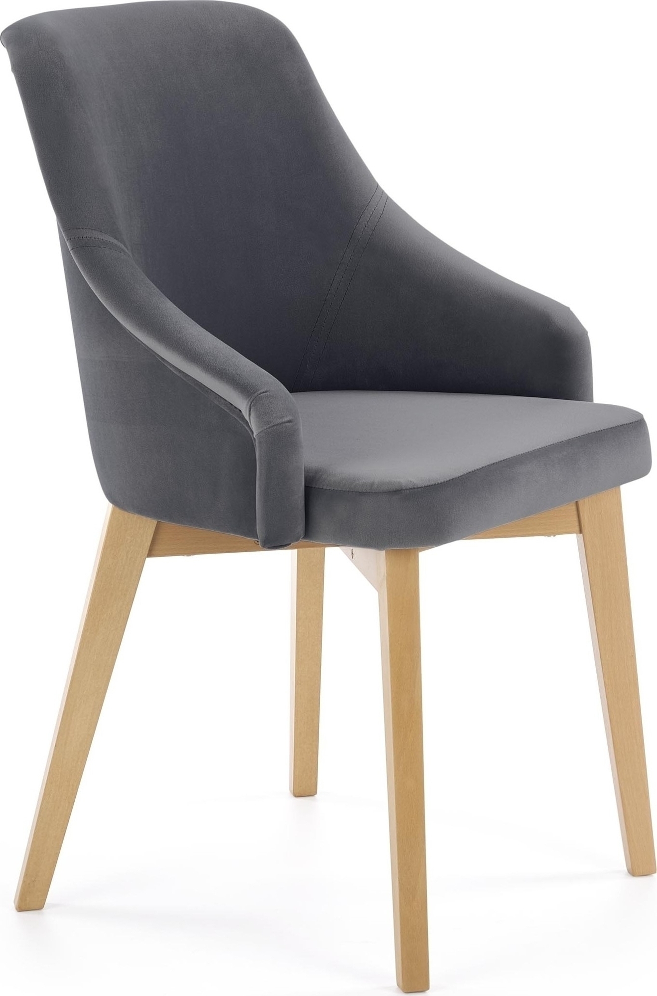 En snygg matstol med en modern design. Stolen är klädd med ett mycket behagligt tyg för maximal komfort och underredet är tillverkat av solid trä med dess naturliga träd look.
