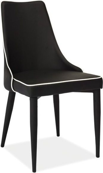 En designstol i svart konstläder med vit kontrastsöm. Passar både till modern inredning som till retro!