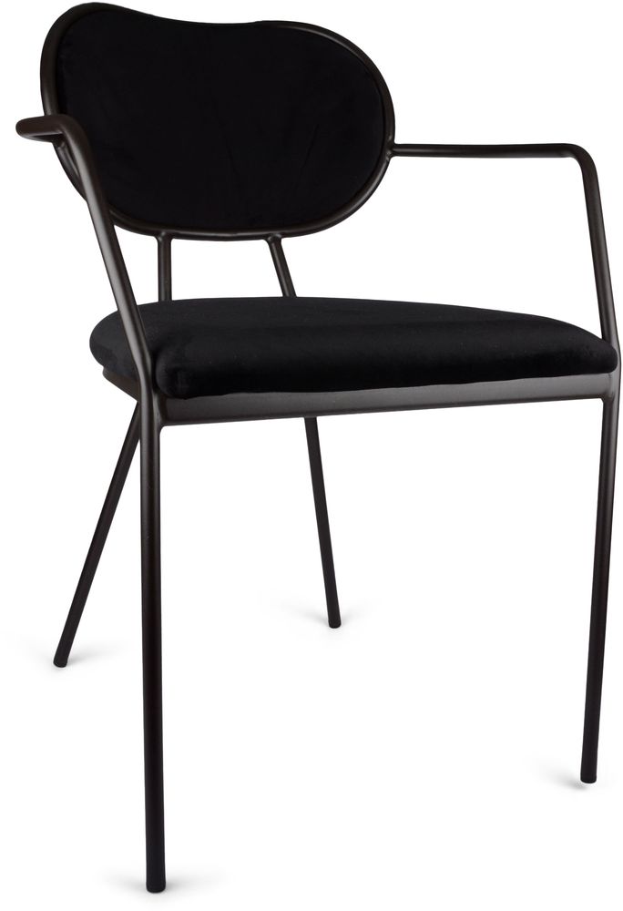 En lyxig stol med en tidlös design. Underredet är tillverkat i svartlackerad metall och en mycket behagligt sits i svart sammet tyg.