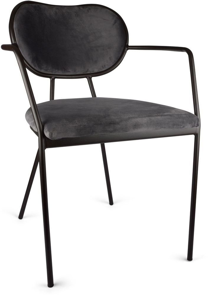 En lyxig stol med en tidlös design. Underredet är tillverkat i svartlackerad metall och en mycket behagligt sits i grått sammet tyg.