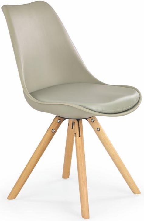 En härlig matstol med en stilren design. Underredet är tillverkat i massiv bok och sitsen är av grå plast med en behaglig klädsel i grått konstläder för maximal komfort.