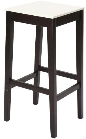 En klassisk barstol i trä med ben som är svartmålade och en sits som är vitmålad.