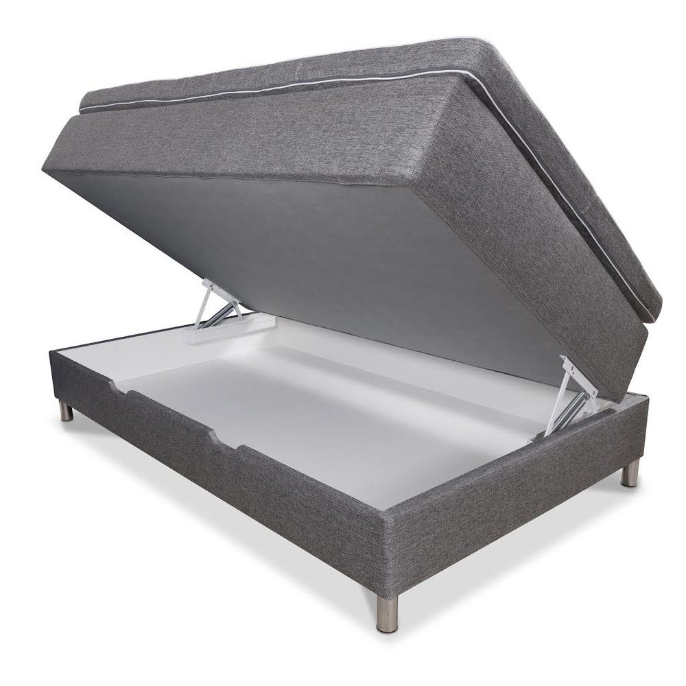 Story Plus boxbed med stor praktisk förvaring i sängen. Ett påkostat pocketfjädersystem med valfri fasthet samt en 9 cm tjock och exklusiv pickerad bäddmadrass gör Story Plus boxbed till en högkvalitativ säng med förvaring.