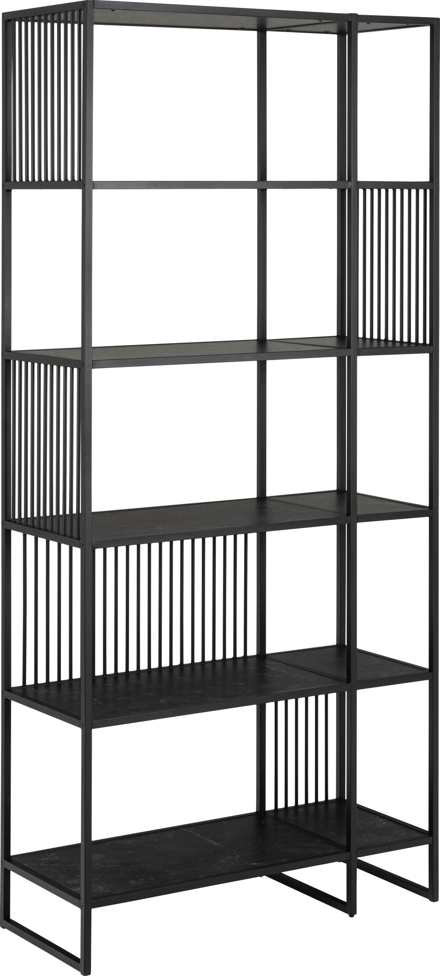 Bokhylla med stomme av pulverlackerad stål och hyllplan av melaminklädd MDF