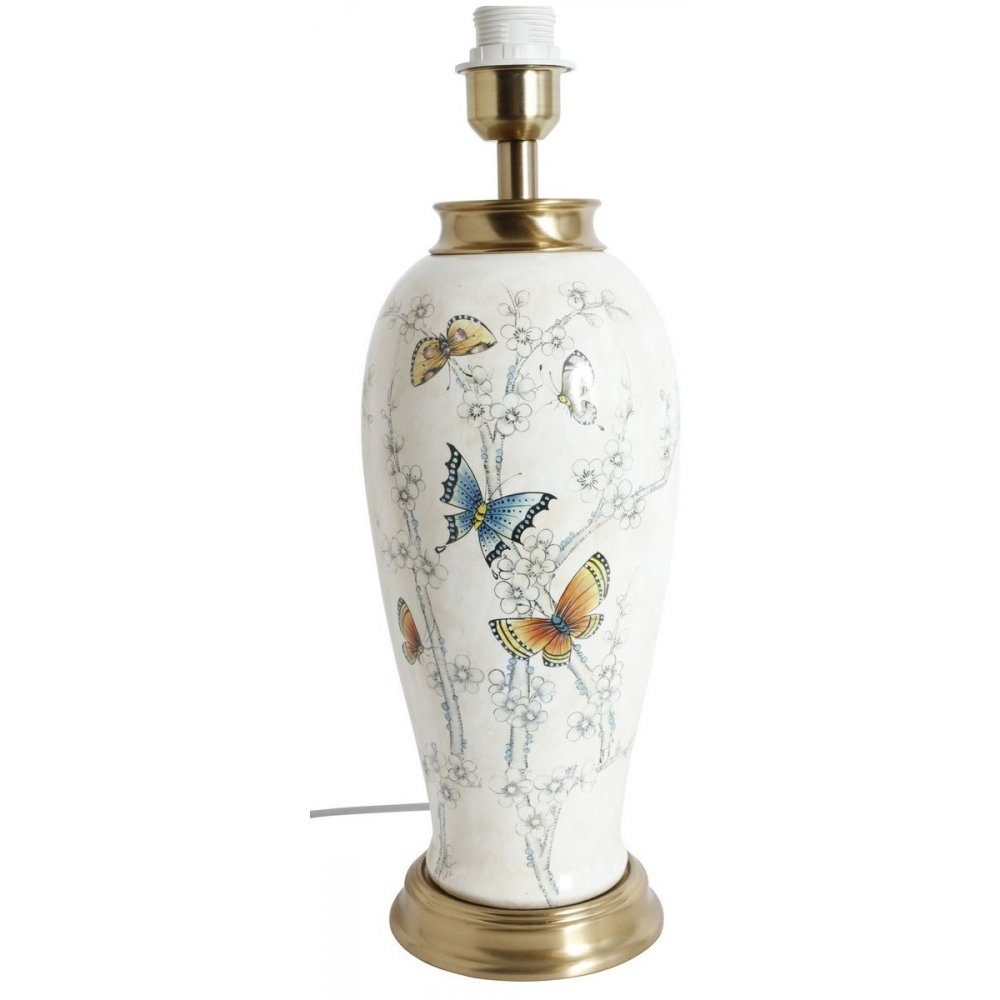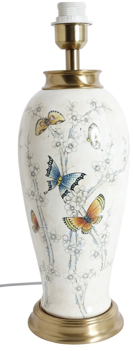 Bordslampan summer i porslin med härligt fjärilsmönster med mässingdetalj på lampfoten.