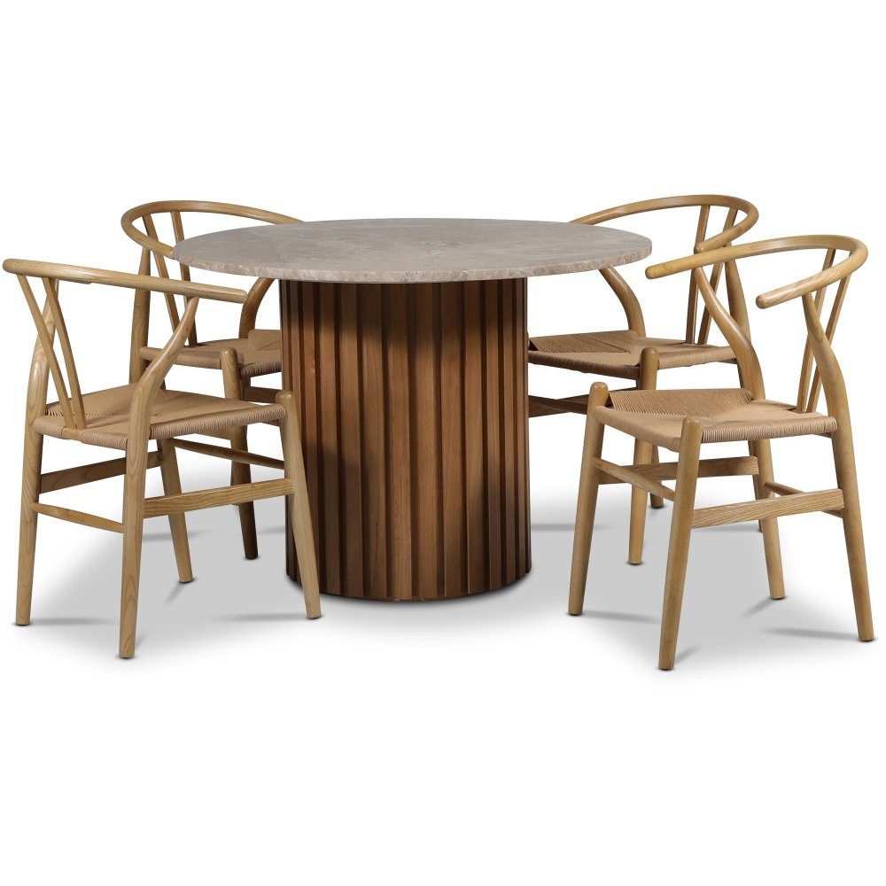 Sumo matgrupp Ø105 cm inkl. 4 st Brandon matstol - Oljad ek / Beige Empradore