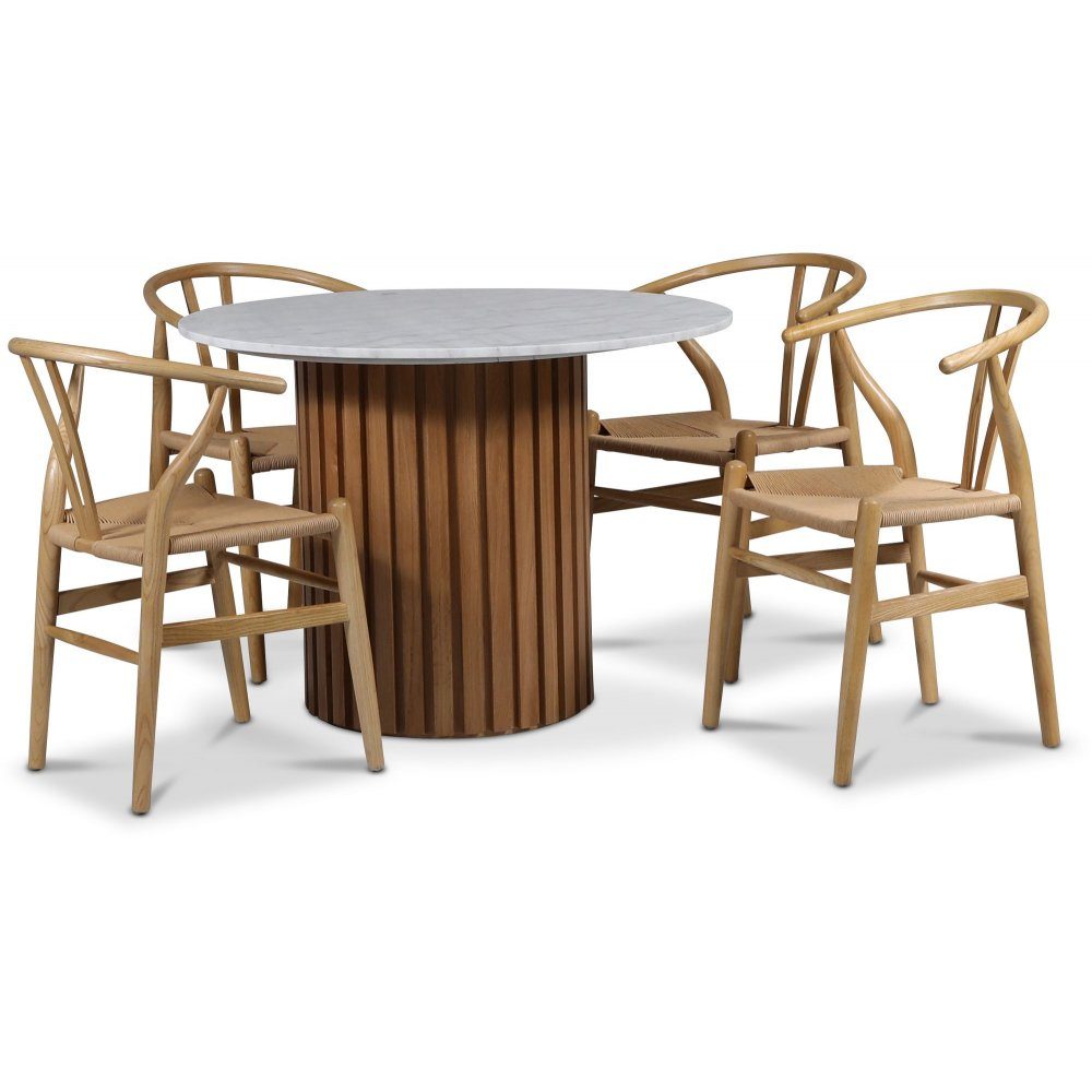 Sumo matgrupp Ø105 cm inkl. 4 st Brandon matstol - Oljad ek / Ljus marmor