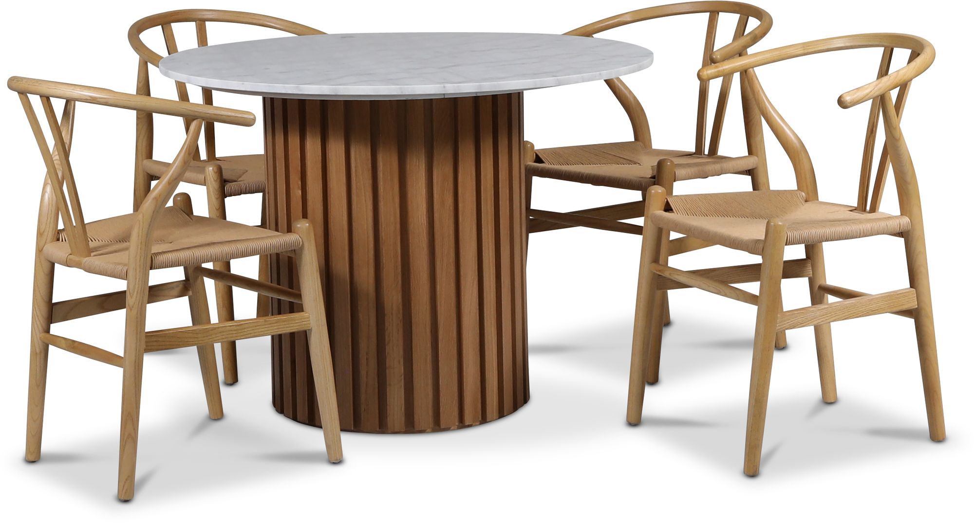 Sumo matgrupp Ø105 cm inkl. 4 st Brandon matstol - Oljad ek / Ljus marmor: