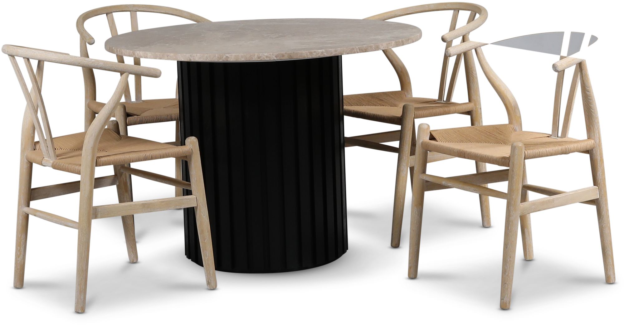 - Sumo matgrupp Ø105 cm inkl. 4 st Brandon matstolar whitewash - Svartbets / Beige Empradore