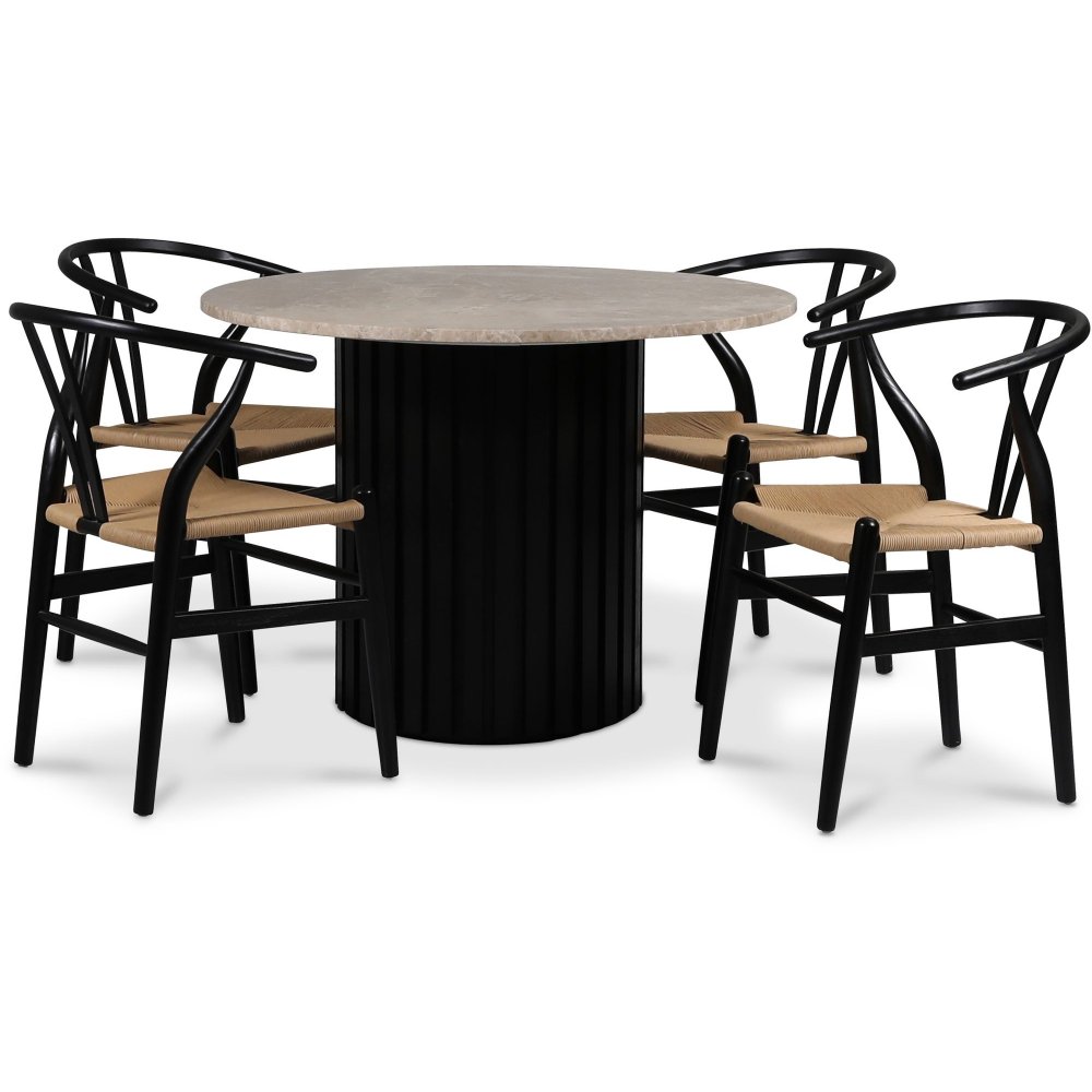 Sumo matgrupp Ø105 cm inkl. 4 st Brandon svarta matstolar - Svartbets / Beige Empradore