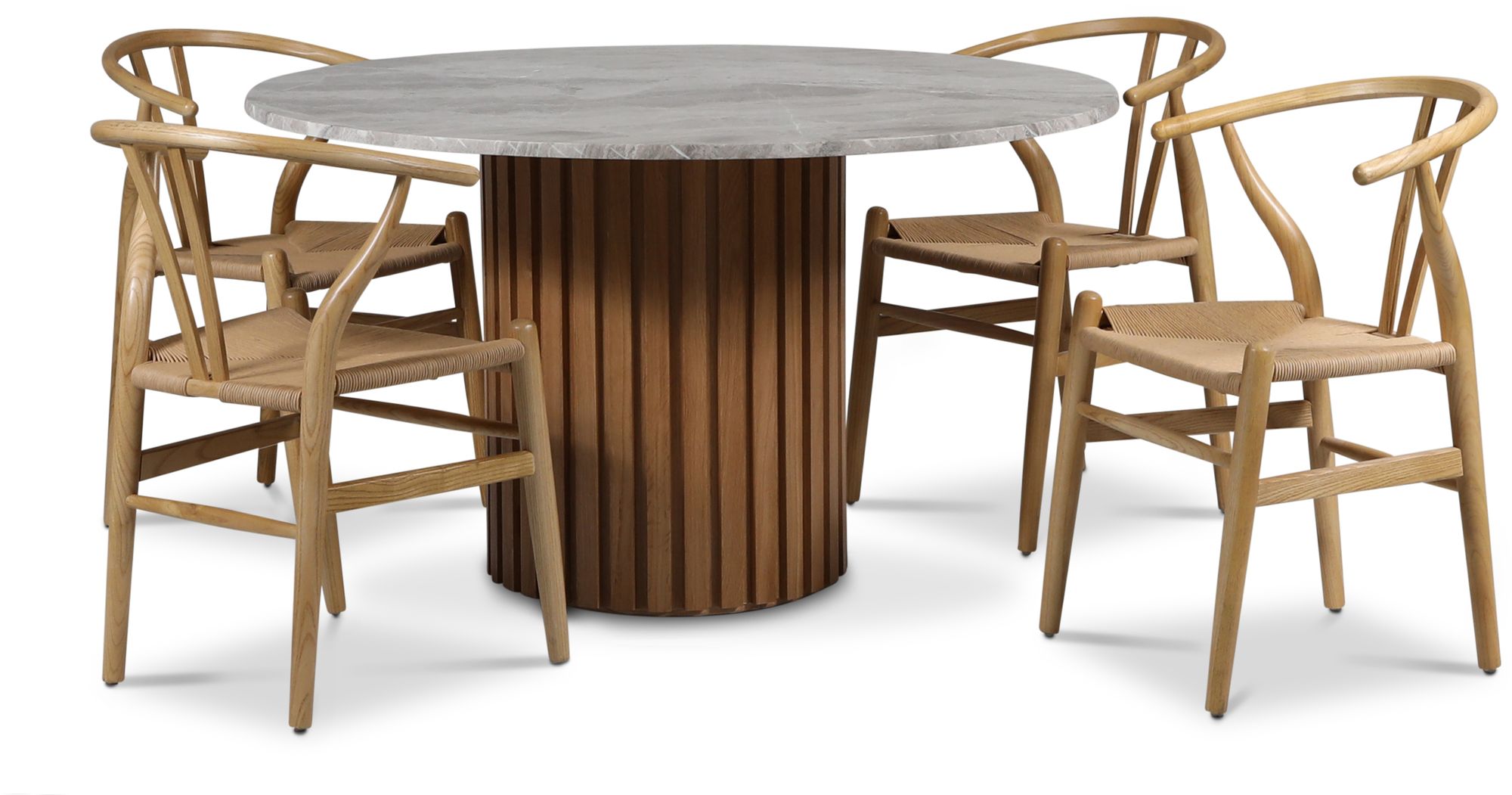 Sumo matgrupp Ø130 cm inkl. 4 st Brandon matstol - Oljad ek / Silver marmor: