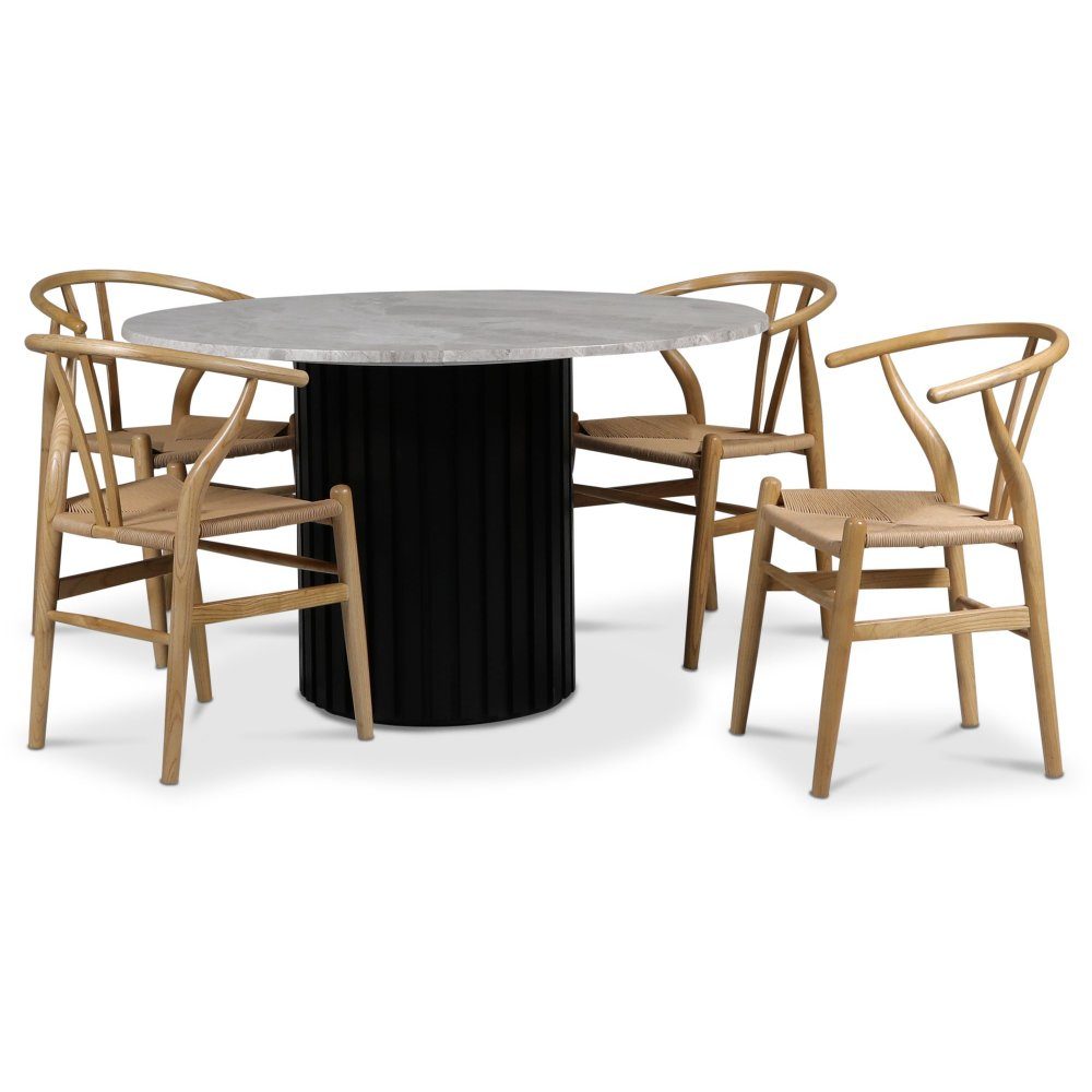 Sumo matgrupp Ø130cm inkl. 4 st Brandon matstolar - Svartbets / Silver marmor