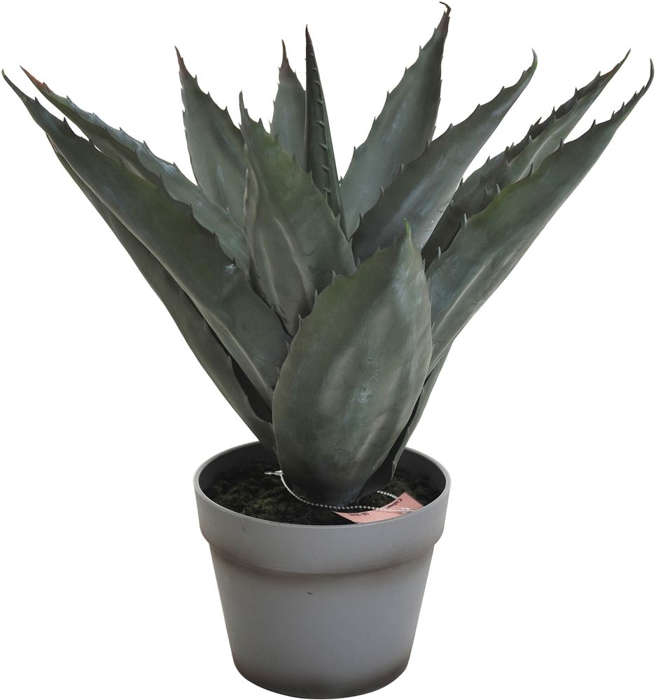 Konstgjord Aloveraplanta med grå kruka.