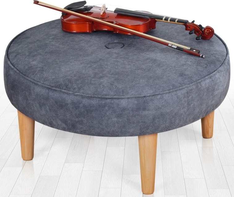 Sittpuff av trä. Klädd med bomull och sammet. Stoppning av skum.