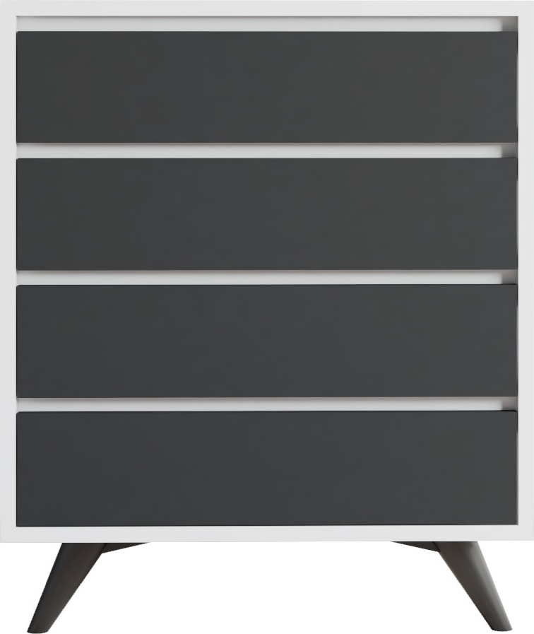 Byrå av melaminbelagd spånskiva.