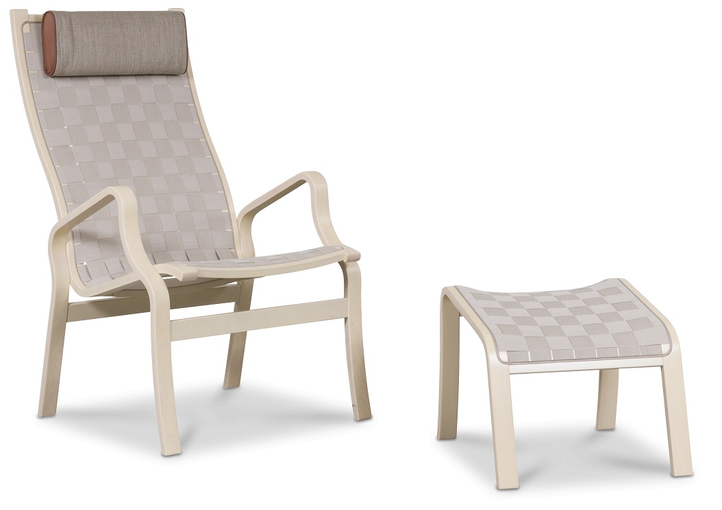Svea fåtölj med fotpall - Sadelgjord / Whitewash