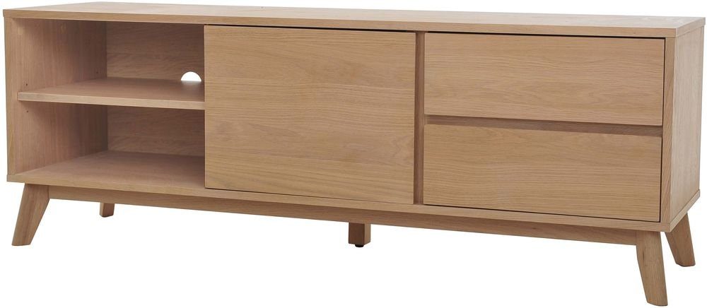 Stilig mediabänk i fanerad, vitpigmenterad och vaxlackad ek med gott om plats för mediaenheter och dylikt. Mediabänken har 1 dörr, 1 hylla och 2 lådor.