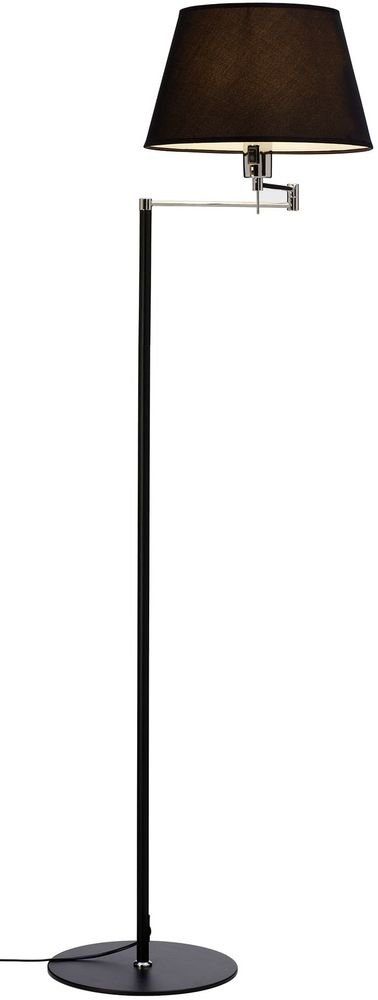 En snygg traditionell golvlampa med en modern design. Tillverkad i svart metall med detaljer i krom. Svängbara armar och strömbrytare på sockel.