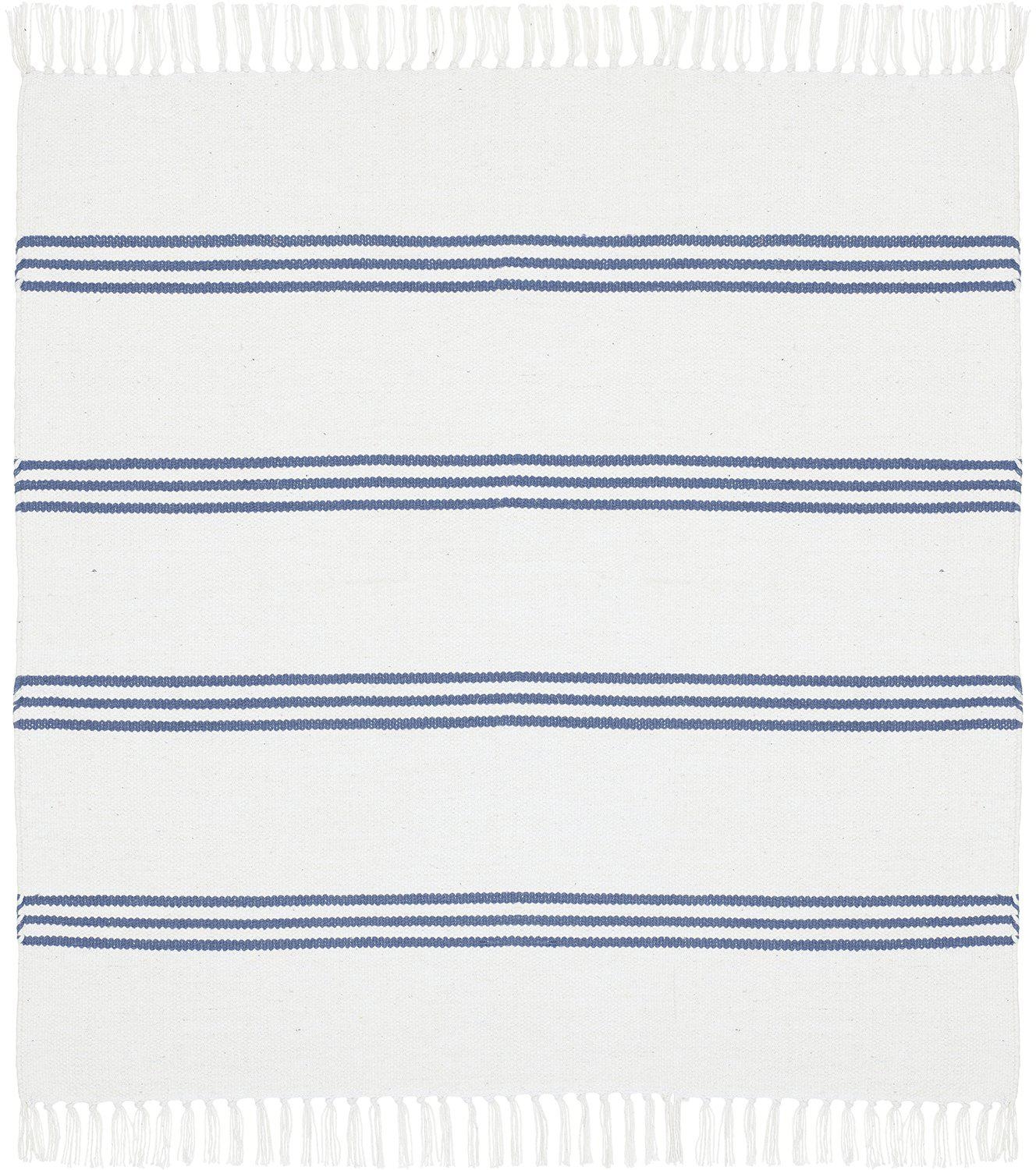 Vävd matta i tunn bomullskvalitet med randigt mönster. Vi rekommenderar halkskydd för att mattan ska ligga bättre mot golvet och för att minska halkrisken.