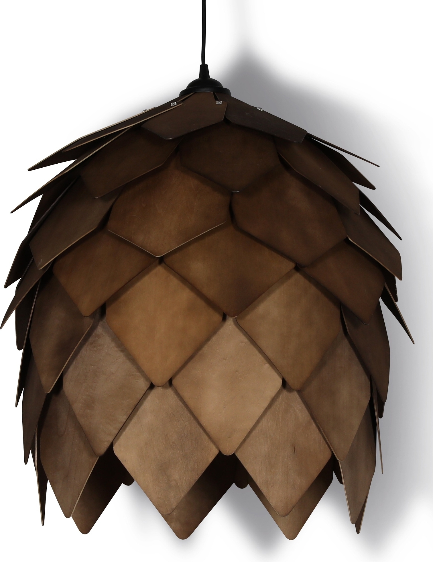 Taklampa Frost gjord i trälameller. Lameller i brunbetsat trä. En riktigt designikon som lyser upp vardagsrummet.