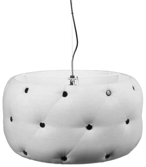 Taklampa Nobby i cremefärgat linneliknande tyg med kromade knappar. En superhäftig lampa!
