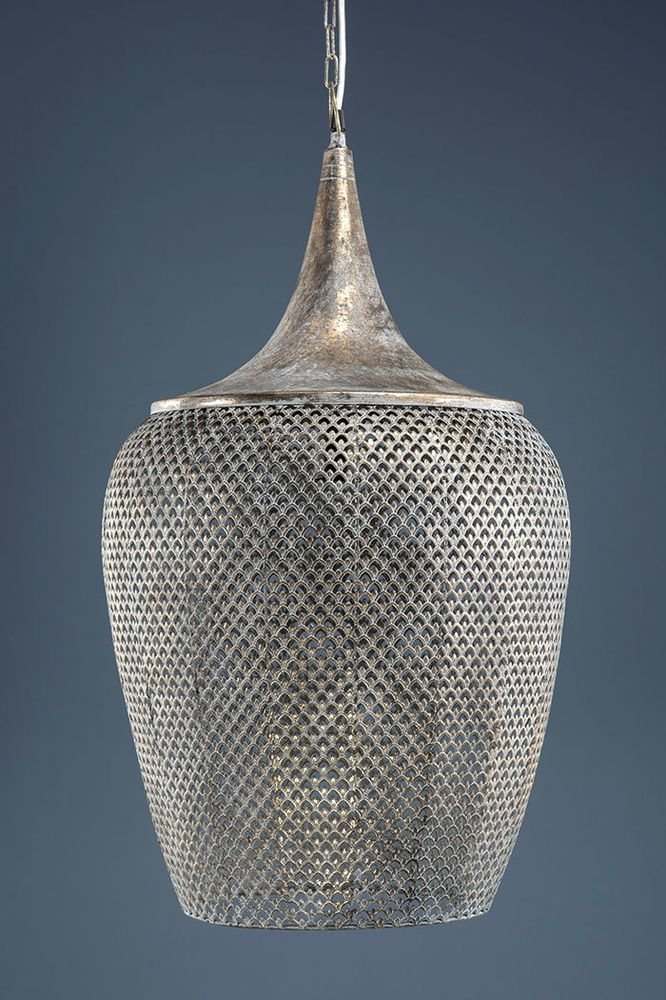 Vackert designad taklampa med arbetad dekorativ yta som reflekterar snygga skuggor i ljuset. Passar perfekt att ha över en soffgrupp eller matgrupp.