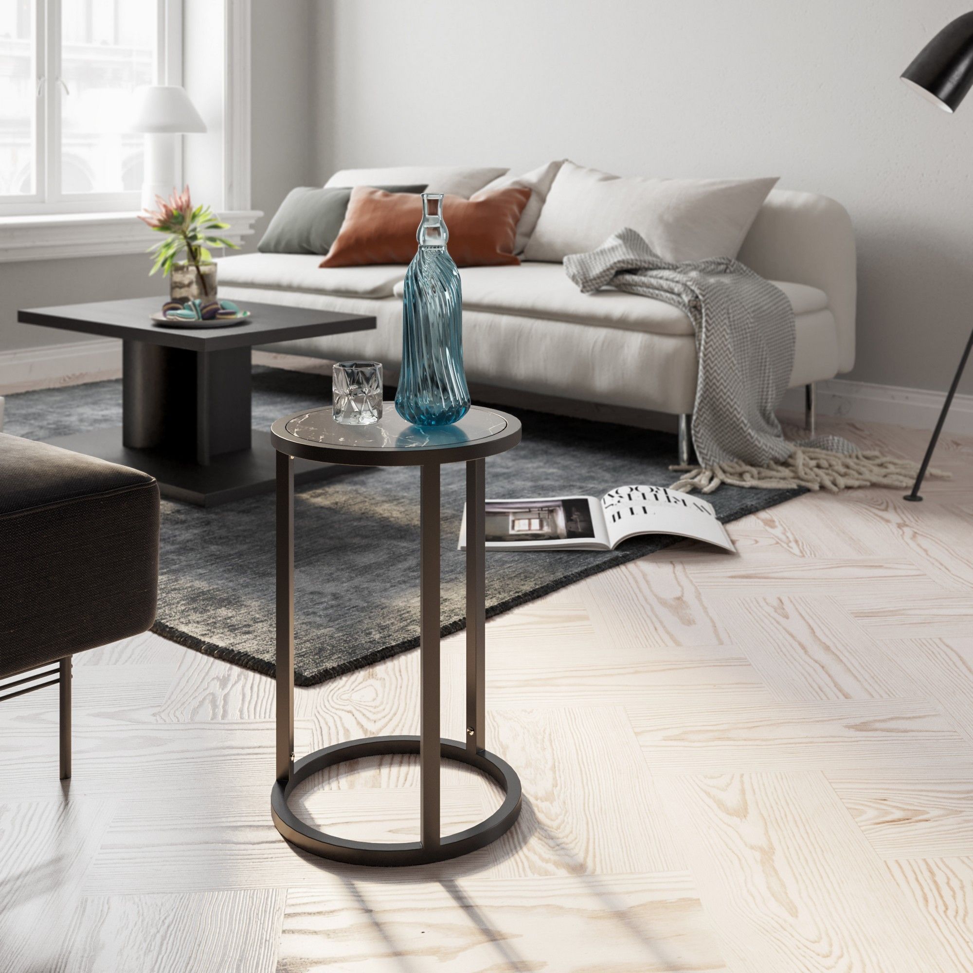 Tambur sidobord 35 x 53 cm - Svart marmor