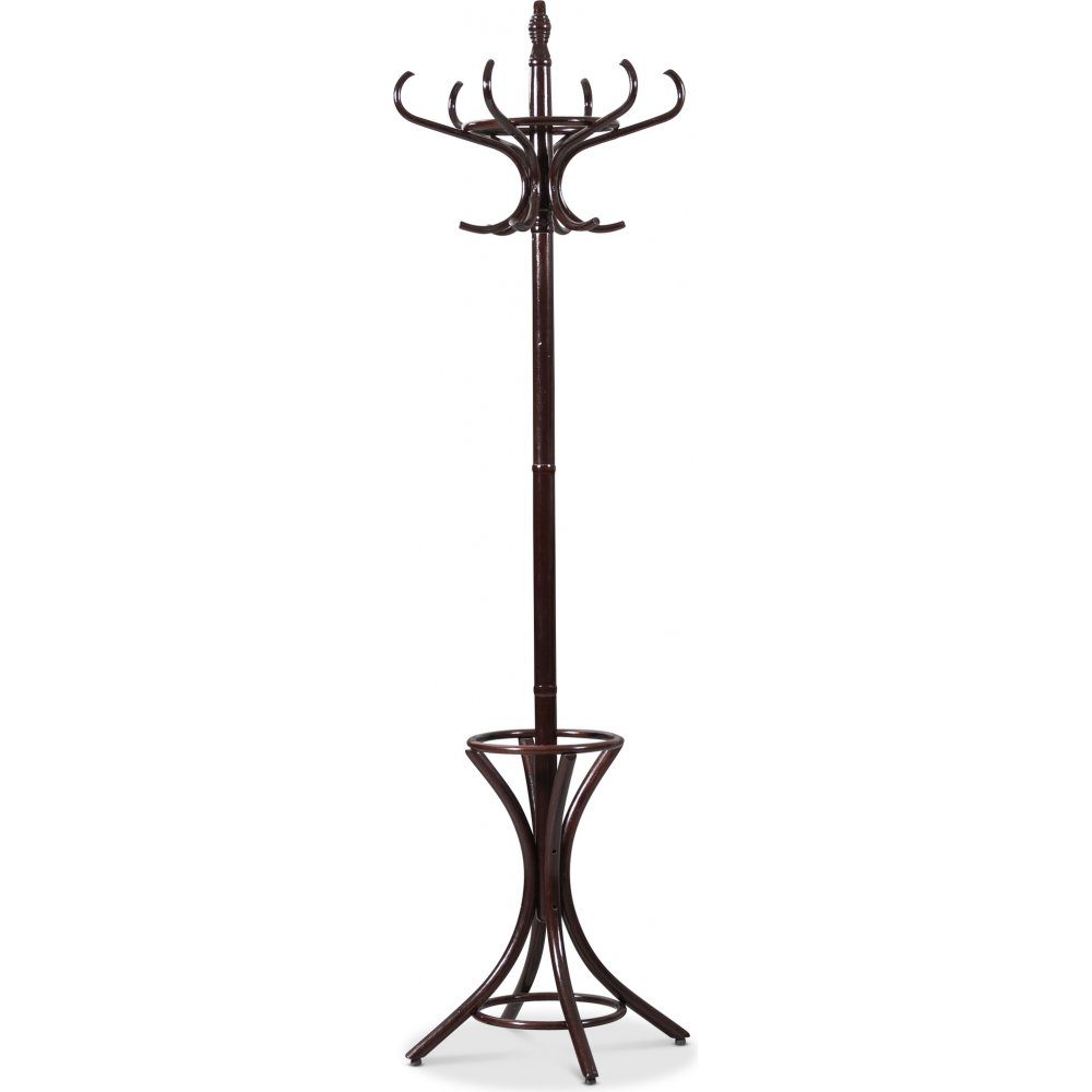 En klassisk tamburmajor med paraplyställ och i en klassisk design. Tillverkad helt i mörkbrunlackerat trä, med ett flertal krokar för att få plats med ett stort antal ytterkläder. Passar perfekt in i hallen. En klassiker som håller för framtiden. Klädhängar som är perfekt för hallen och entrén.