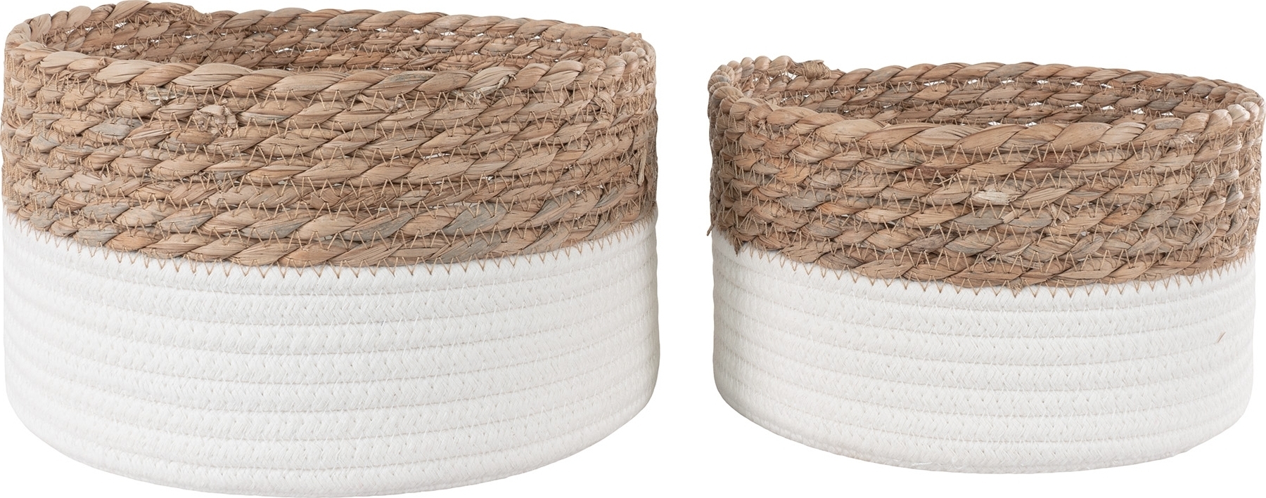 2 st korgar av bomull och vass.