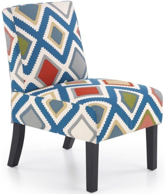 En härlig fåtölj med en stilren design. Fåtöljen är tillverkad av solid gummiträd med svartmålade ben och sitsen är klädd med ett mycket behagligt tyg för maximal komfort.