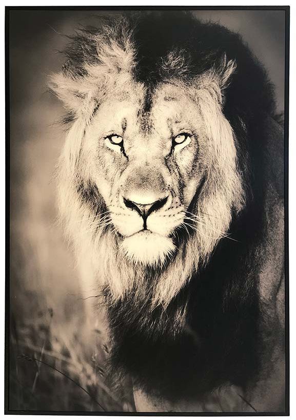 En fin tavla med motiv av ett lejon. Matt finish med svart ram.