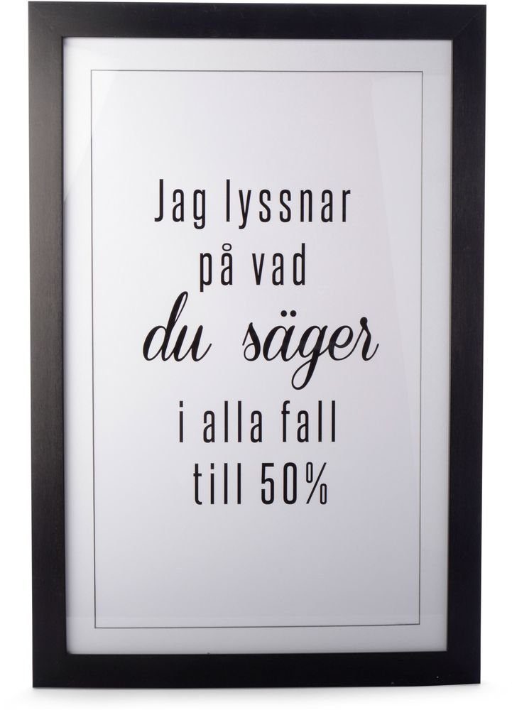 En stilren och humoristisk tavla med svart plast ram.