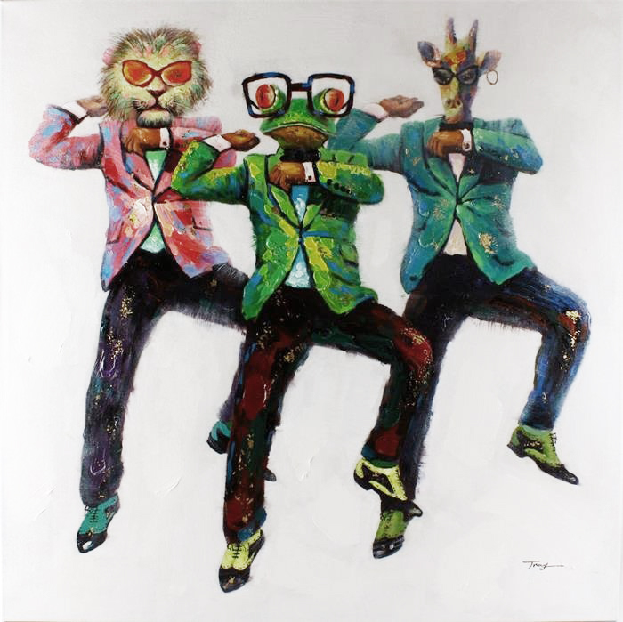 Häftig oljemålning på canvasduk med färgglatt motiv, monterad på en 3 cm djup träram. Material för upphängning medföljer.