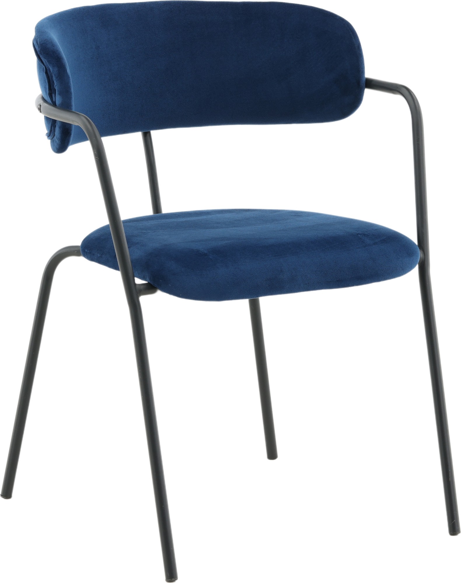 Karmstol av metall och plywood, klädd med polyestertyg.