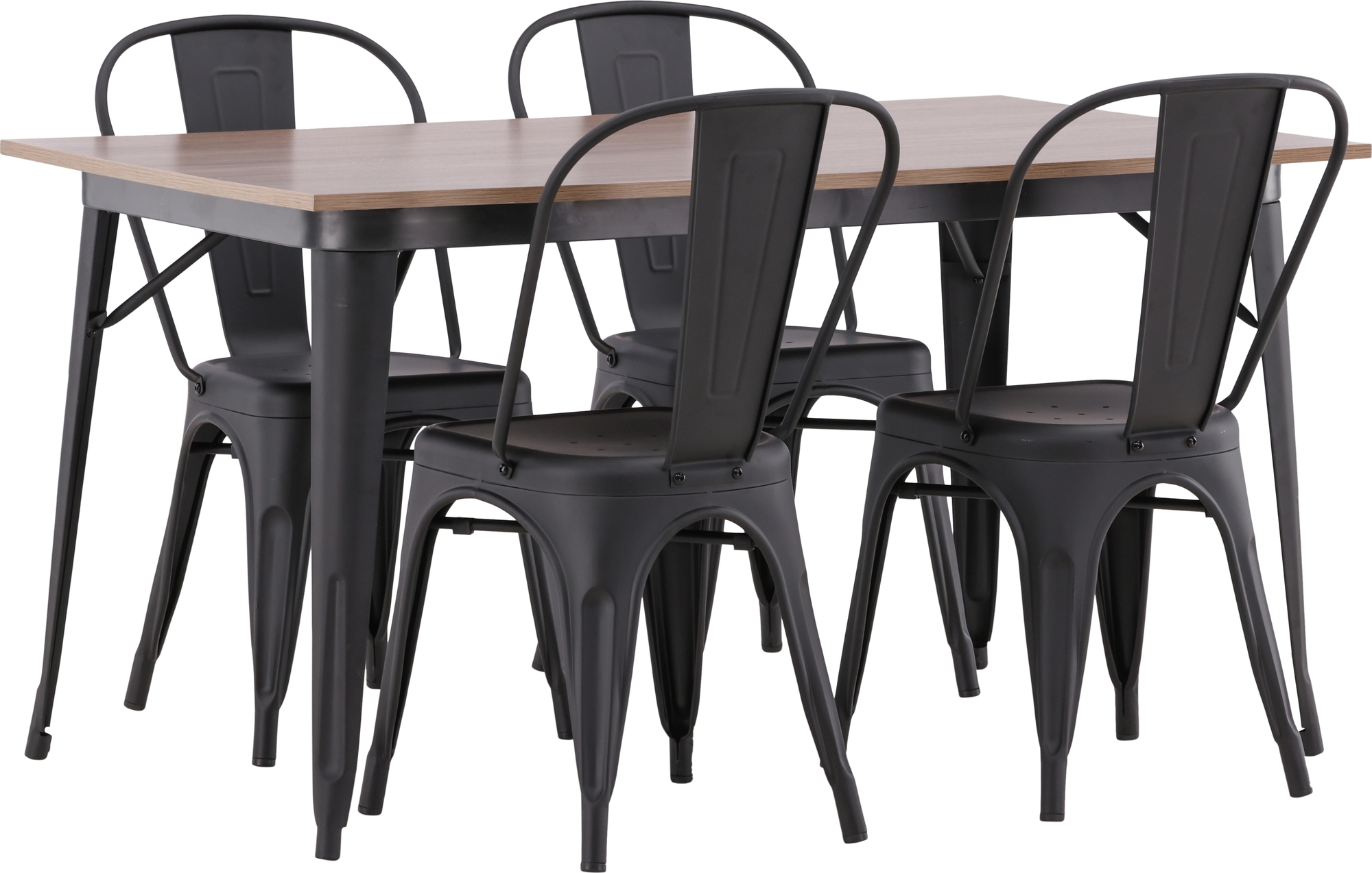 Tempe matgrupp, stålbord med 4 st stålstolar - Svart/valnöt