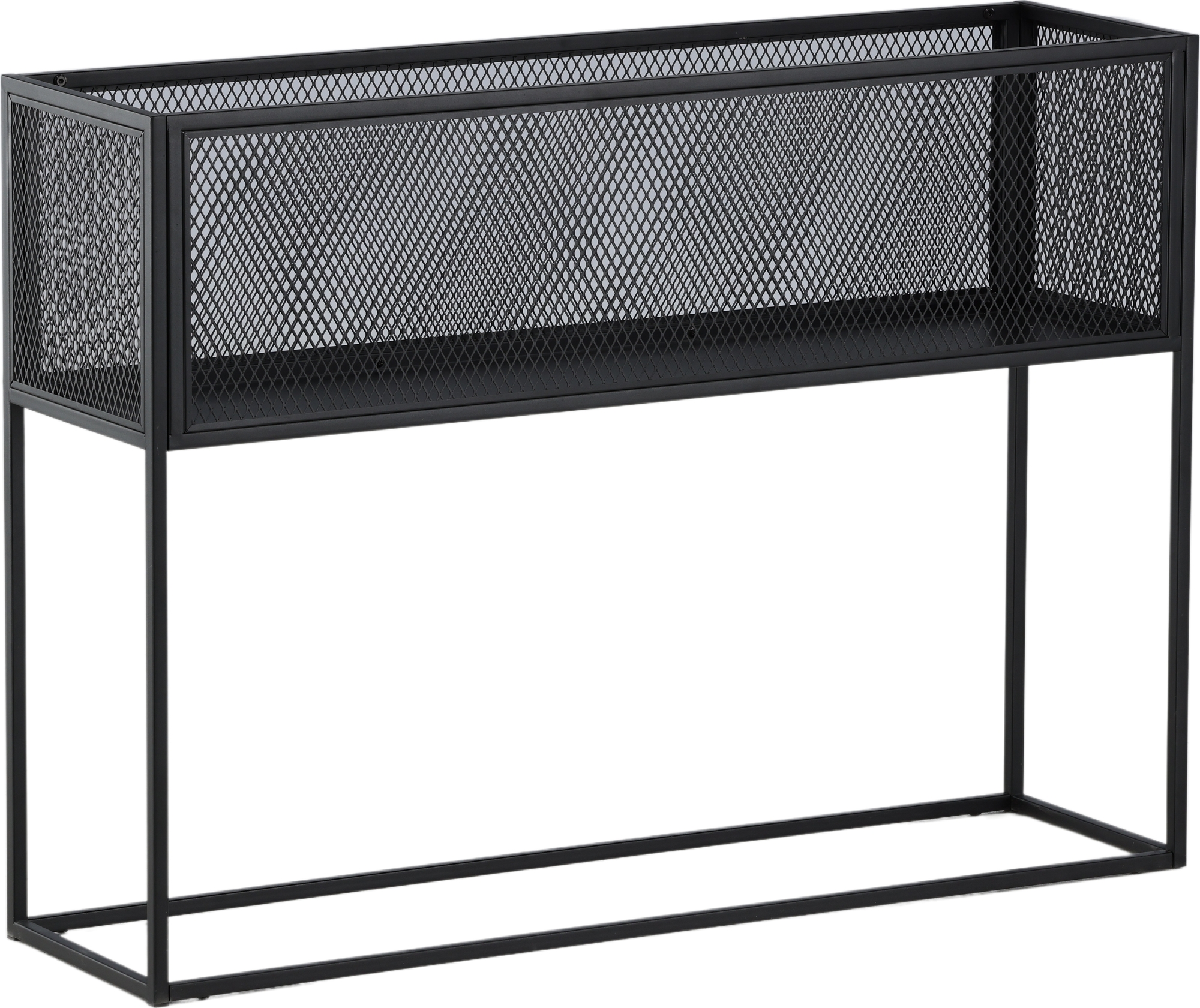 Möblera hemmet modernt och smart med hjälp av Teo avlastningshylla. Det här läckra sidobordet/hyllan har en smäcker industriell design med ett hyllplan för förvaring, nätsidor omkring hela förvaringsytan och smala höga ben i svart stål. Skåpets smidiga storlek och eleganta utsida gör den lättplacerad och passar bra in i de flesta rum i hemmet, så möblera efter egna behov och önskemål och pryd med vackra dekorationer, blommor eller annat som måste förvaras - bara fantasin sätter gränser.