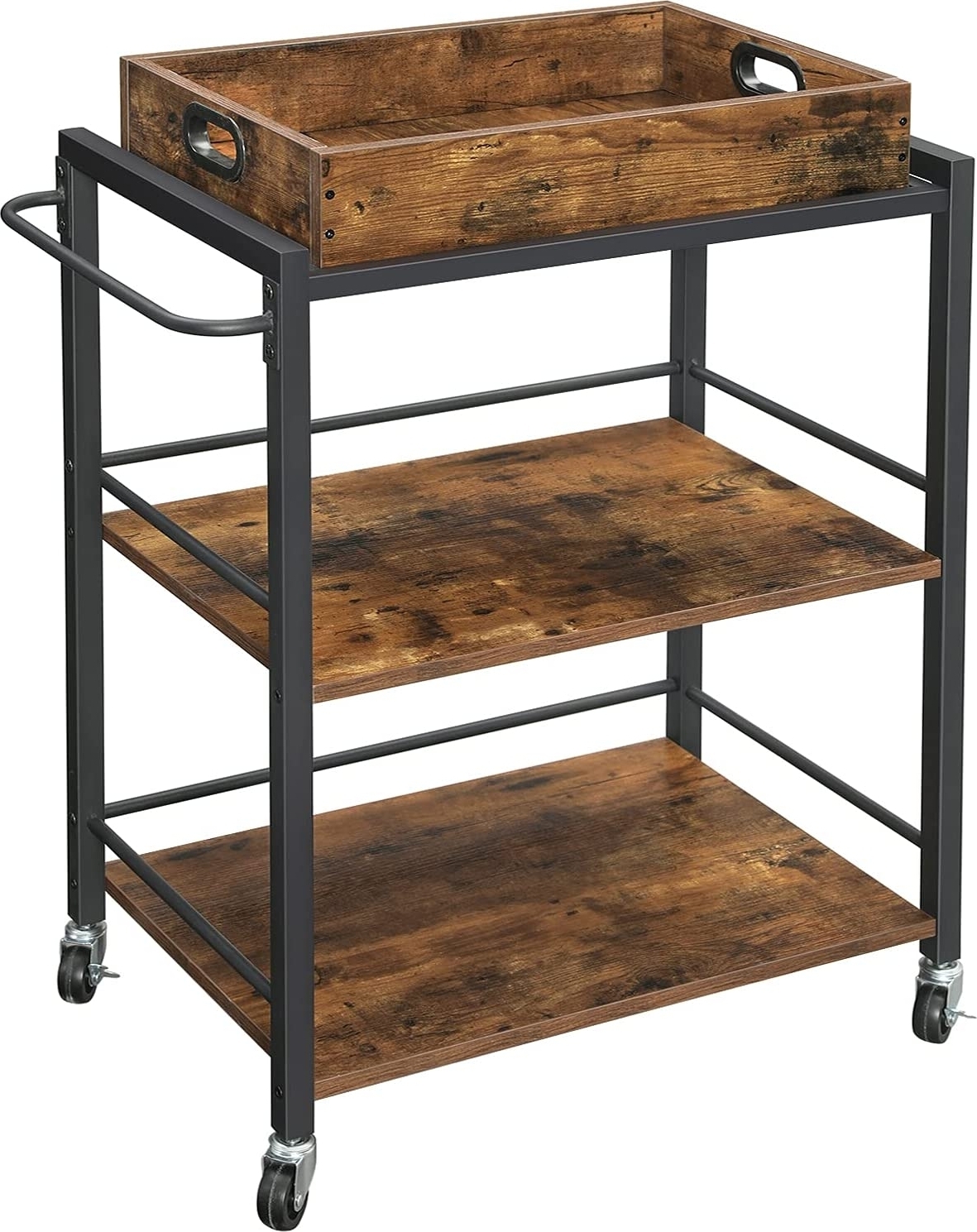 Med flera hyllplan och hjul för enkel förflyttning är vagnen perfekt för att servera drycker, förvara köksredskap eller använda som en mobil avlastningsyta. En praktisk lösning för både vardag och fest!