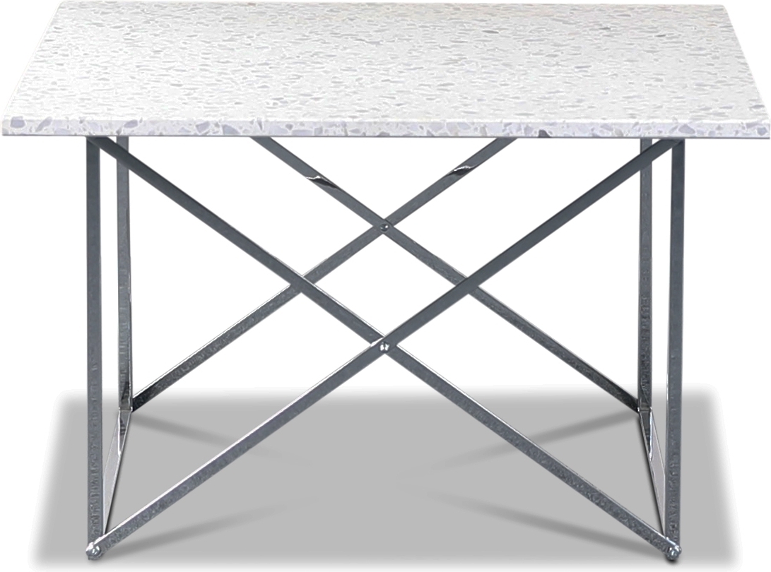 Terrazzo soffbord 75x75cm - Bianco Terrazzo & underrede cross krom