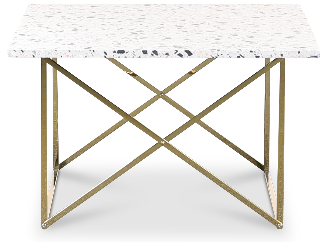Terrazzo soffbord 75x75cm - Cosmos Terrazzo & underrede cross mässing