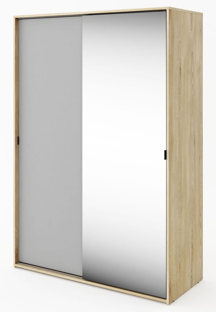 En härlig garderob med skjutdörr. Tillverkad i MDF med goda förvaringsmöjligheter i form av klädstång och ett flertal hyllplan.