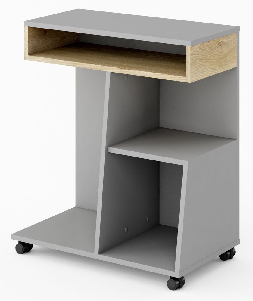 Ett snyggt mindre skrivbord med en stilren design. Tillverkad i MDF med smarta förvaringsfack och hjul undertill som gör det lätt att förflytta.