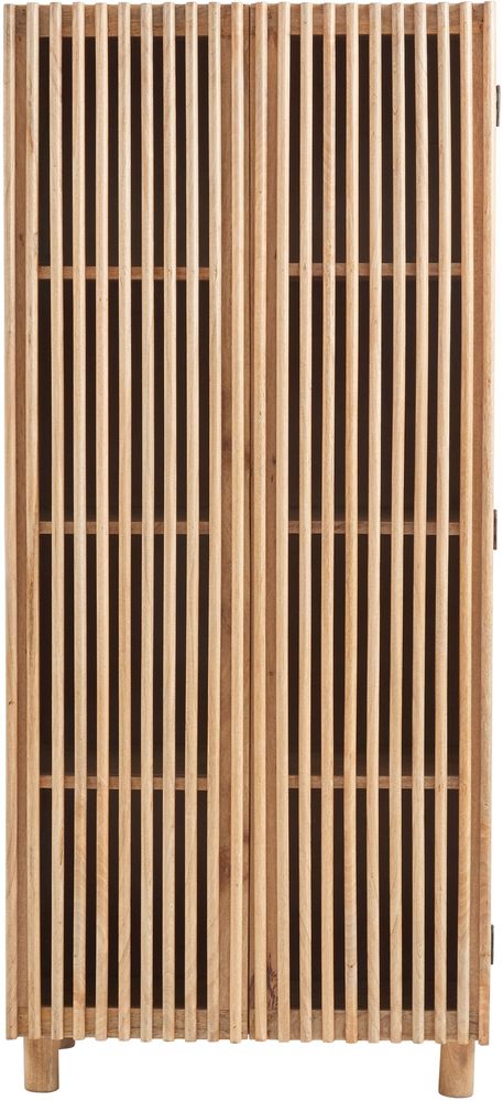Garderob i mangoträd med spjäldörrar som det går att se igenom. Ger en luftig garderob med gott om plats till förvaring.