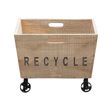 Liten praktisk förvaringslåda i trä med svartmålade metallhjul. Passar bra för förvaring av småsaker.